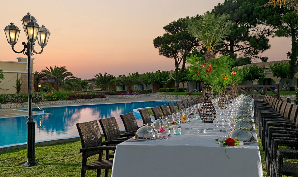 The Main Restaurant "Symposio" presents a diverse selection of Greek, Mediterranean, and International dishes, prepared daily using the freshest ingredients. The menu caters to various preferences, including meat, fish, and vegetarian options, complemented by an extensive wine selection.