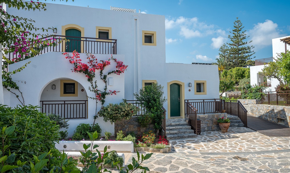 - Positioned just steps from the water, these bungalows present an easy connection to the poolside setting, shaped by understated Cycladic influences and a warm Cretan sensibility. The 27–30 sq.m open-plan interior incorporates a bedroom and sitting area, with either a king-size bed or twin beds complemented by a sofa bed, arranged according to occupancy.