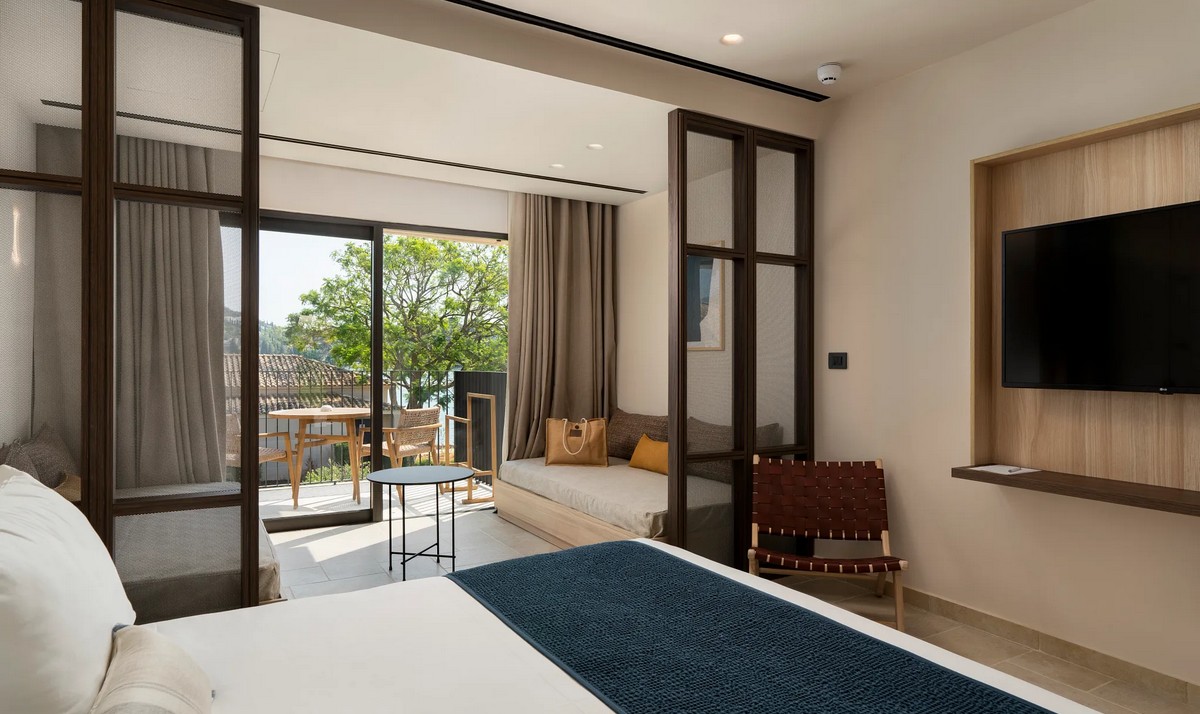 Dreams Corfu Resort & Spa offers a diverse selection of accommodations, each furnished with premium amenities to ensure maximum comfort. Standard amenities across all categories include satellite LED 50" 4K Ultra HDMI television, complimentary high-speed Wi-Fi, central air conditioning, bathroom with rainfall shower, furnished balcony or terrace, bathroom scales, bathrobes and slippers, comprehensive toiletries set, 24-hour room service (additional charges may apply), mini-bar with water, soft drinks and beer, hairdryer, kettle, espresso coffee capsule machine, laundry service (additional charges apply), beach and pool towels, free in-room safe, and pillow menu.